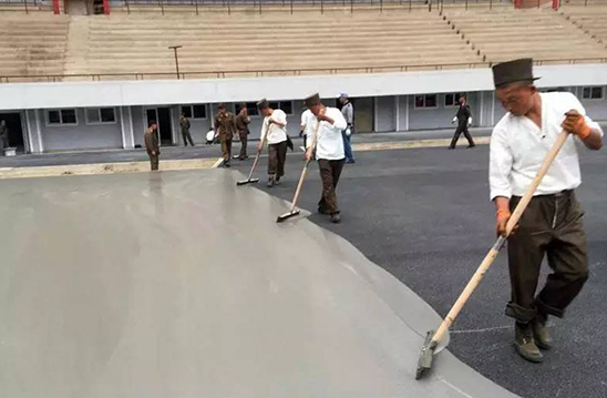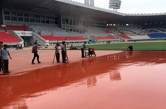 (2014年,长河全塑型SPU自结纹跑道初次登陆朝鲜!)