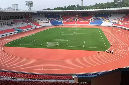 2016年,长河全塑型SPU自结纹跑道再次登陆朝鲜——金日成体育场翻新工程!时间见证品质!