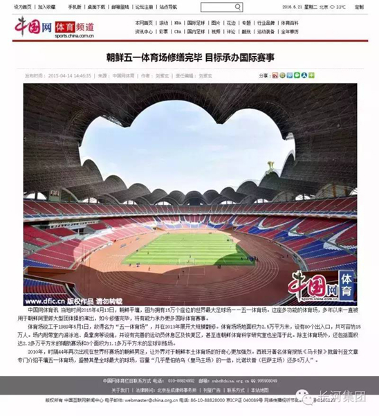昨日,朝鲜金日成体育场翻新工程正式完工。这是继2014年9月,世界上最大的体育场馆——朝鲜五一体育场“全塑型SPU自结纹跑道工程”圆满建设完成后,长河集团的又一力作!