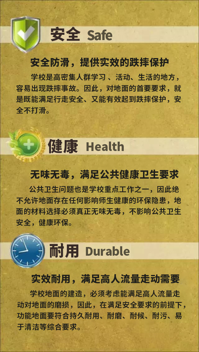 SPU橡胶弹性地坪沉淀长河集团十年专注安全地坪创新研发经验,将有“万能涂料之王”之称的聚脲材料引入到产品当中,并创新出现场滚筒印制仿石纹花式的工艺,使得一体涂装成型的弹性地坪兼具更安全、更环保、更耐用、更美观的超卓品质。