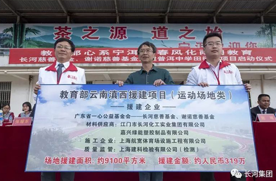 长河集团作为此次活动援助材料商将为普洱中学带来一条标准400米跑道和运动篮球场。