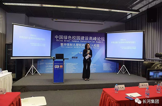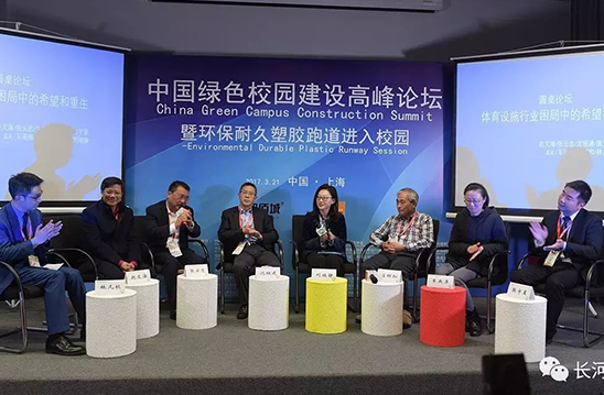 2017年3月21日,"中国绿色校园建设高峰论坛暨环保耐久塑胶跑道进入校园"在上海浦东新国际博览中心成功举行。这是一场足于吸引整个体育场地建设与设施行业从业者们聚焦关注的重磅峰会。来自全国各地的专家、学者、使用单位、监管单位、等人士齐聚一堂,为建设绿色校园建言献策,展开了一场激情澎湃的思想碰撞。作为"硅PU第一人"、长河集团董事长赵文海先生也受邀出席了本次峰会。