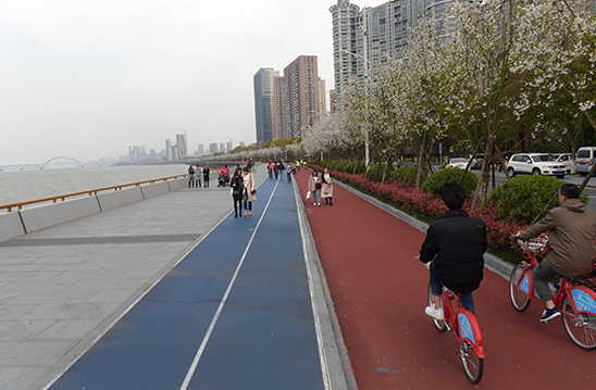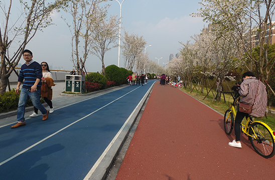 还记得G20期间,刷爆朋友圈的最美跑道么?全长15.5公里、2000多株樱花树隔离带、蓝色的塑胶跑道、红色的自行车道,美得不可方物,堪称杭州市容最美的颜值担当~