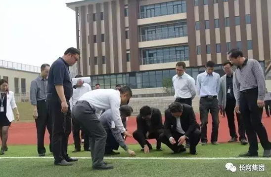 4月20日下午,苏州市副市长曹后灵率领市政府副秘书长马九根,市教育局局长张曙、副局长高国华一行来到苏州工业园区星澄学校调研塑胶跑道建设情况。苏州工业园区党工委委员、管委会副主任夏芳,园区教育局局长沈坚,园区教育局办公室主任顾纯青陪同调研。