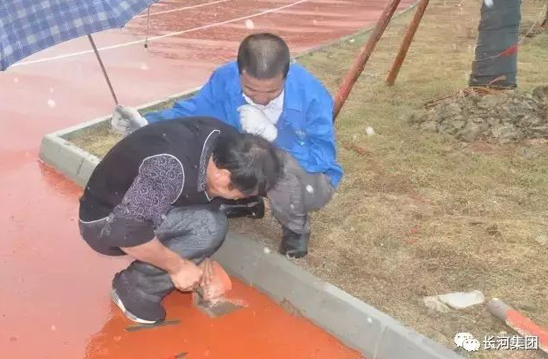 苏州市工业园区星澄学校的新建塑胶跑道采用了长河全塑型SPU自结纹跑道材料,由专业的施工队伍进行施工,经过十多道工序,前后铺设六层才完成。星澄学校的筹建人员、工程管理方、监理方和家长代表全程见证了施工过程,一起在现场提取SPU跑道材料、弹性减震层样块等进行封样,一起将封样分别送至江苏省产品质量监督检验研究院和华东理工大学运动场地合成材料检测中心这两家国内最权威的检测中心进行检测。