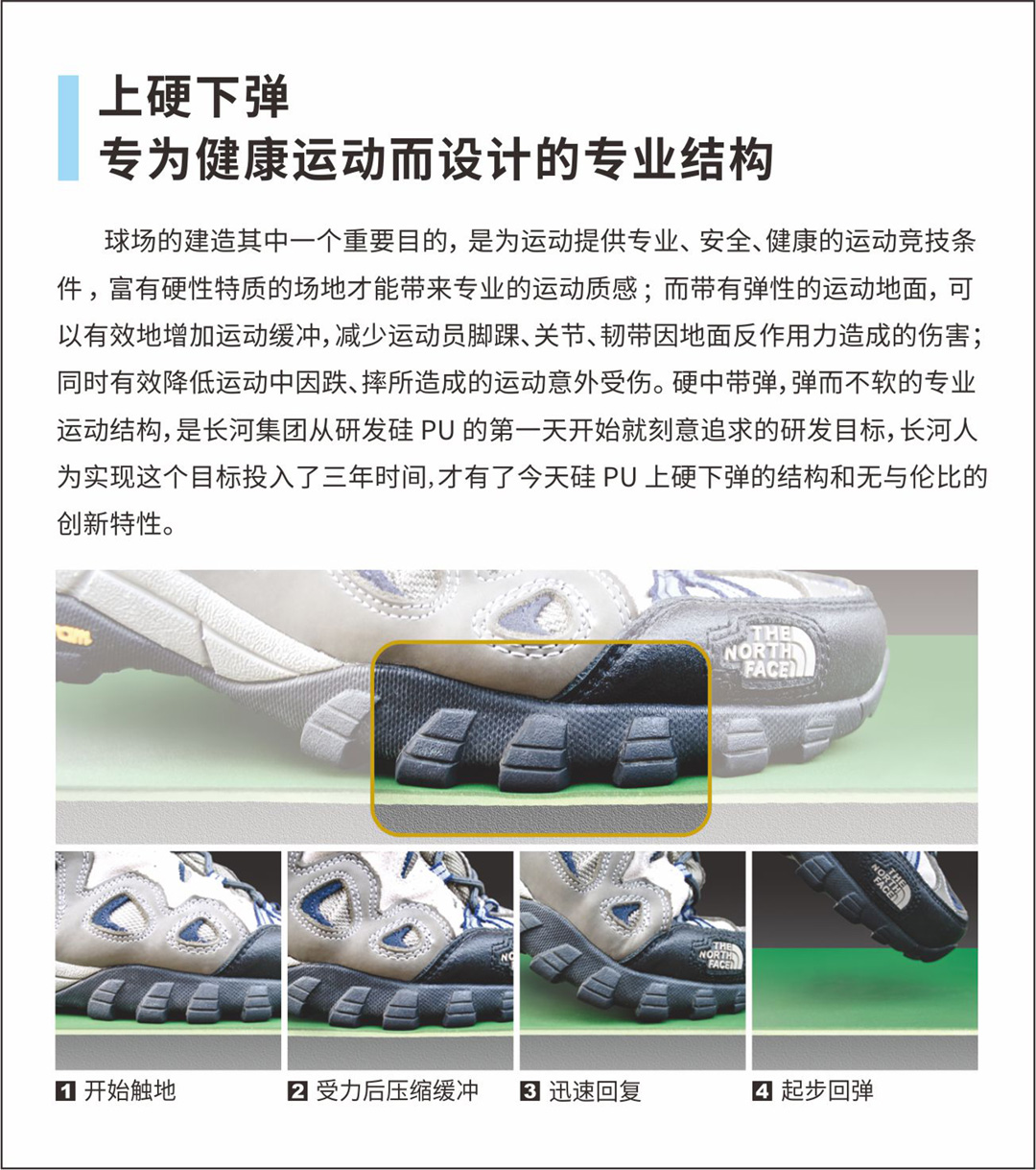长河集团与篮球的渊源一直很深厚,例如经典之作硅PU,这款被市场公认的健康型专业弹性球场材料经过多年岁月的考验,已成为中国乃至世界户外篮球场地建造的标杆!在研发之初,长河人希望能为运动健儿提供专业、安全、健康的运动竞技条件,经历3年时间的投入才诞生出这款上硬下弹结构、富有专业运动质感、可以有效地增加运动缓冲、减少运动员脚踝和关节以及韧带因地面反作用力造成的伤害、有效降低运动中因跌和摔所造成的运动意外受伤的运动地坪,为篮球运动提供了里程碑式的场地条件!