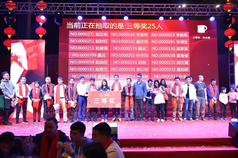 今年我们设定了电脑抽奖模式,晚会依次抽取三等奖、二等奖、一等奖、特等奖,还临时追加了彩蛋奖,掀起了晚会一浪又一浪的高潮。