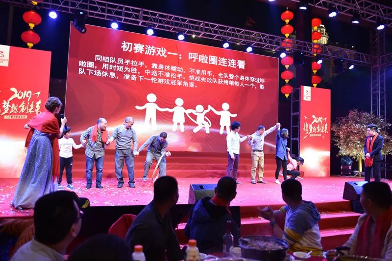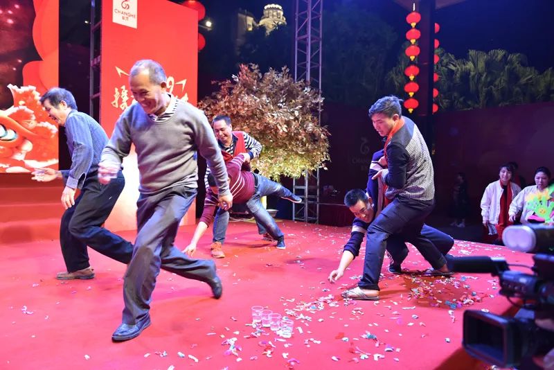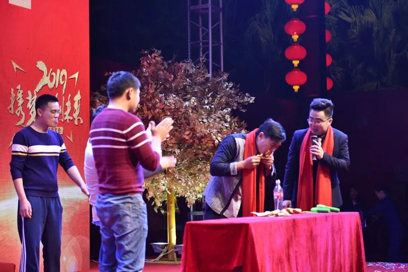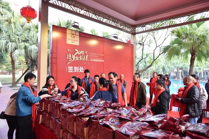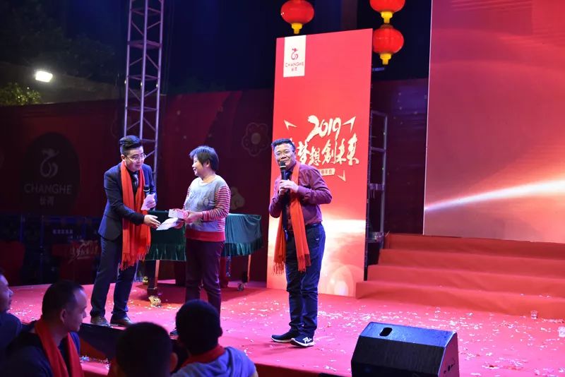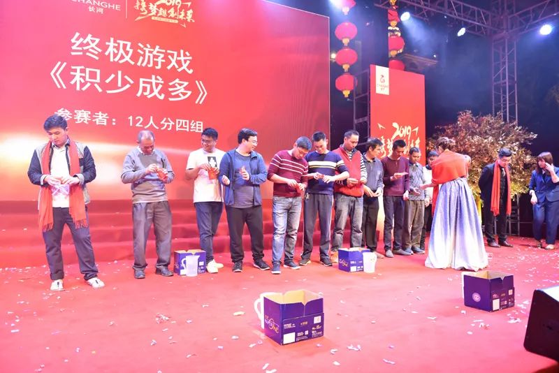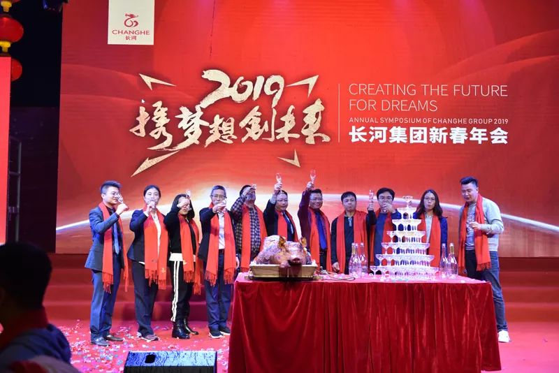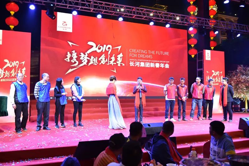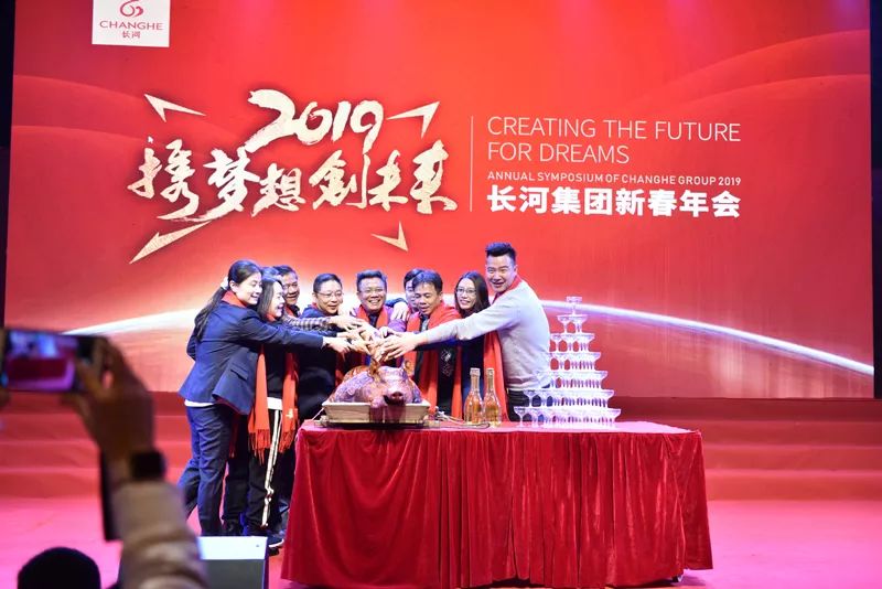 随着工间操结束之后,盛装出席的主持人上场致开场白,并邀请长河集团董事长赵文海先生上台致辞,赵文海先生在致词中对所有参会人员表示感谢与欢迎,还给大家送上了期望与祝福,希望大家在2019年能一如既往的支持长河的工作。随后我们进行了切烧猪、致酒等环节,正式拉开了2019长河集团年度盛会的帷幕。