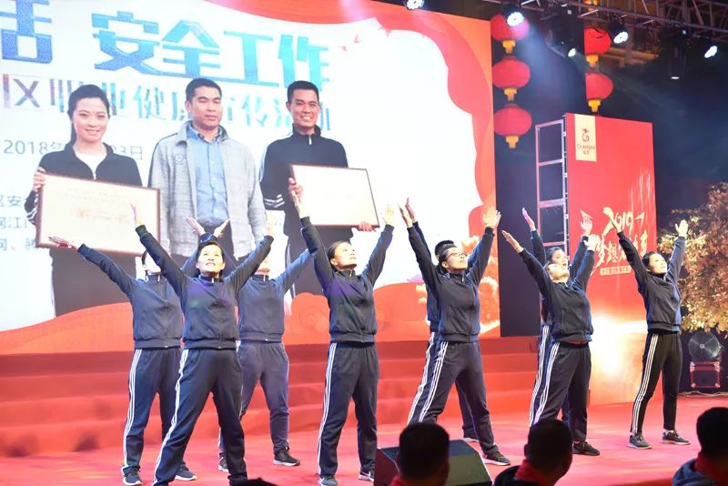 随着灯光逐渐变暗,屏幕开始倒数,新年的钟声响起,向我们走来了一支精神奕奕的工间操队伍。瞧他们飒爽的英姿,饱满的精神,为我们传达了“健康生活 安全工作”的理念。