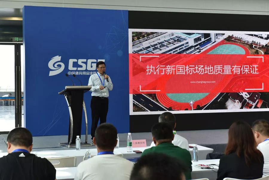 展会上,长河集团带来了校园运动地面产品展示,并在“学校体育装备发展论坛”中发表了讲话。