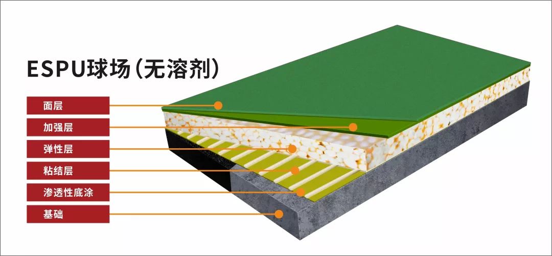 长河ESPU球场是在硅PU球场材料的基础上开发研制出来的新一代产品。不仅保留硅PU优越的耐候性、超强的耐磨性和出色的抗污性,而且有效地升级硅PU球场材料在专业性能、环保施工、使用寿命、日常维护等方面的使用,具有更高的冲击吸收,更小的垂直变形量,均衡一致的物理性能和满足更高环保要求,是新一代的硅PU球场环保产品。