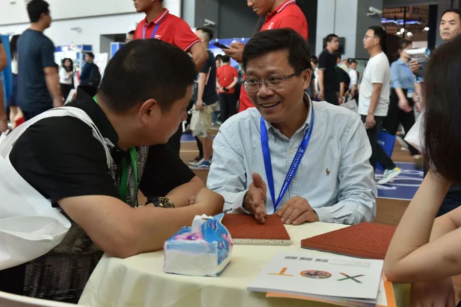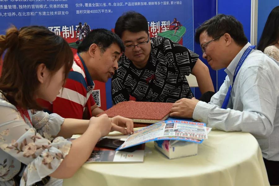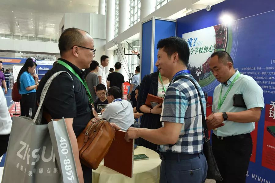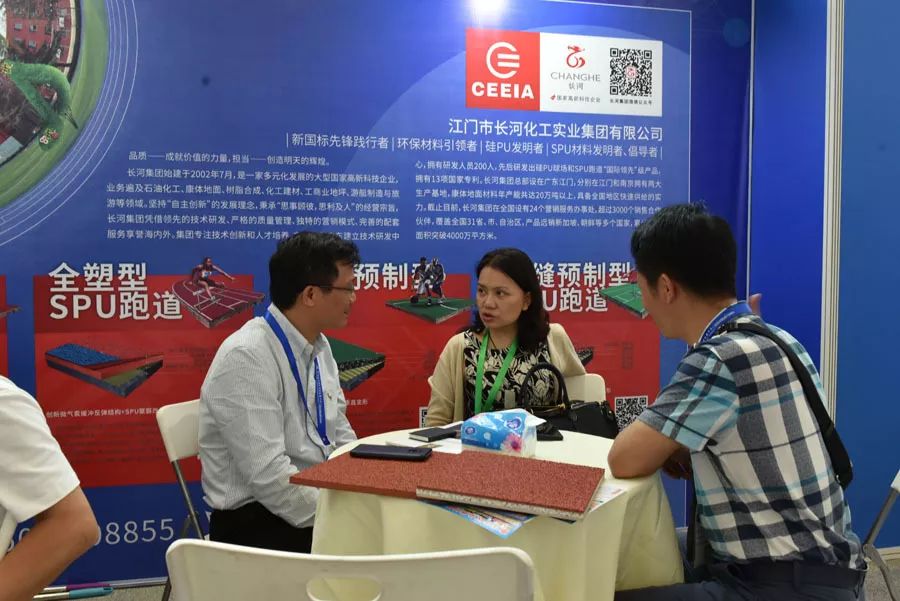 长河产品的亮相吸引了众多参会者驻足观看、感受体验,为回应观众们的热情,长河工作人员做足精心准备,热情地接待每一位来宾,为他们讲解长河产品以及校园运动地面整体解决方案。