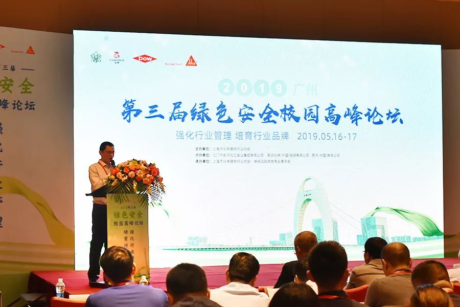2019年5月17日,以“强化行业管理,培育行业品牌”为主题,由上海市化学建材行业协会主办,长河集团、陶氏化学(中国)、西卡(中国)等知名企业协办,上海市化学建材行业协会学校运动场地专业委员会承办的“第三届绿色安全校园高峰论坛”在广州羊城顺利召开,来自有关管理部门、生产企业、科研机构、业主方等多名领域代表共同出席了活动。