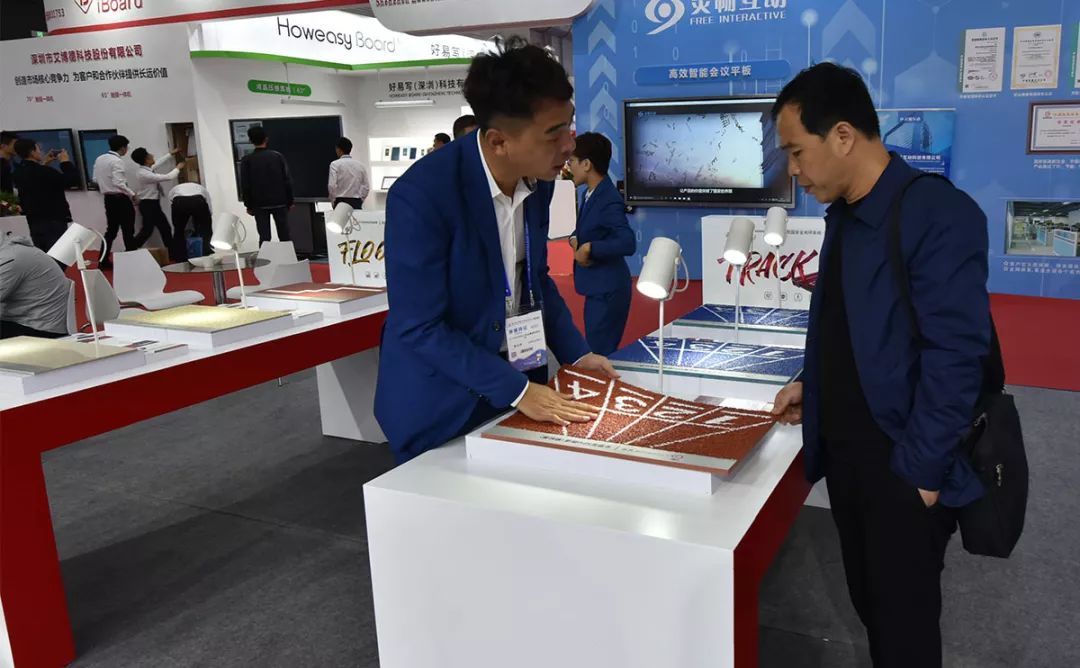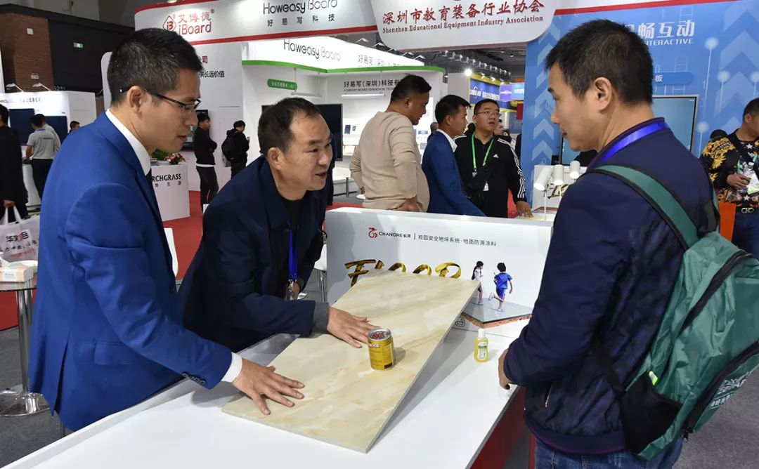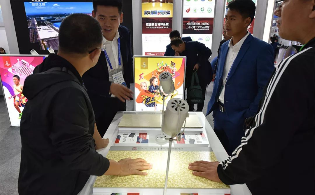 展会期间,观众对长河校园安全地坪系统产生浓厚兴趣。